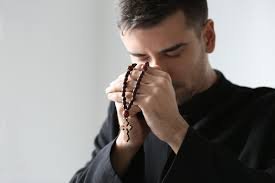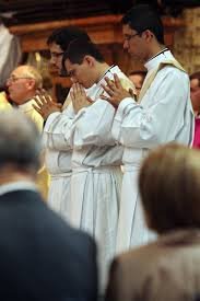 Fieles católicos orantes por la santificación de los sacerdotes.